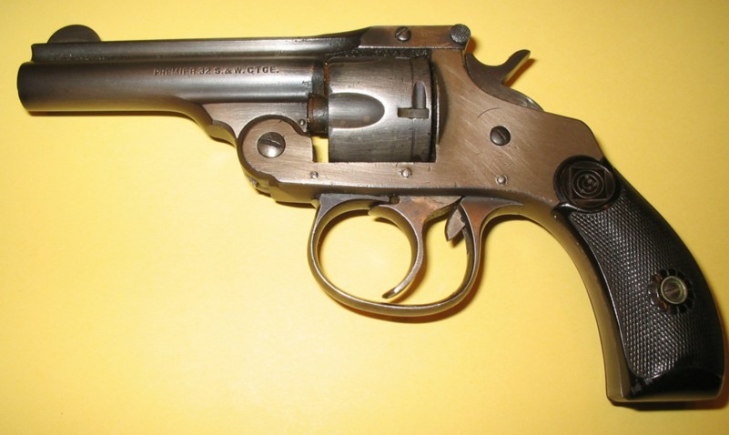 This is one of the innumerable copies of the Smith & Wesson 3rd Model, in the .32 caliber. This prestigious topbreak revolver has in its day been a source of inspiration to numerous American, Belgian, French, British, Spanish and Russian gunmakers, who issued thousands of copies in various calibers (from .22 to .50) in double and single action.