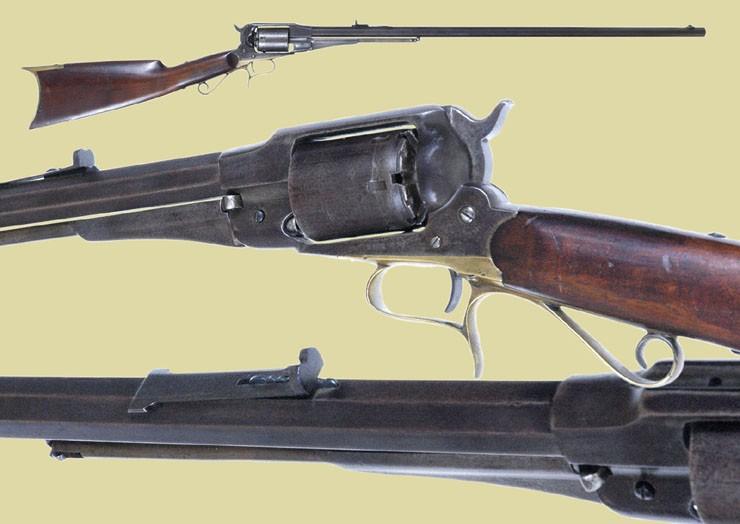 Conversion en .38, canon de 28 1/8 " octogonal sans inscriptions de fabricant. Visée arrière ouverte réglable. Finition bleuie. Garde de détente et plaque de couche en laiton. Crosse en noyer vernis.