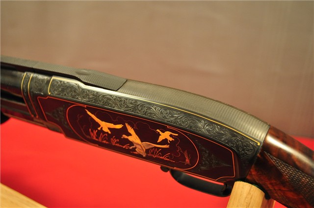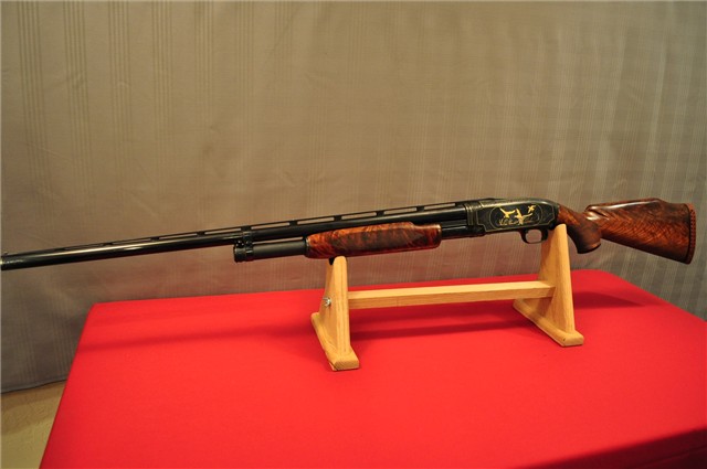 Modèle 12 chambré en calibre 12. Il a un canon de 28 pouces avec bande ventilée.