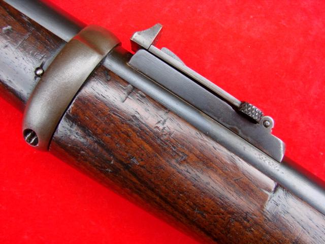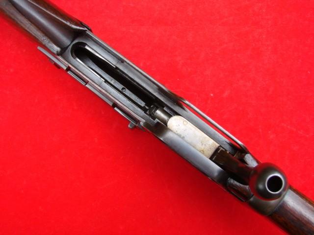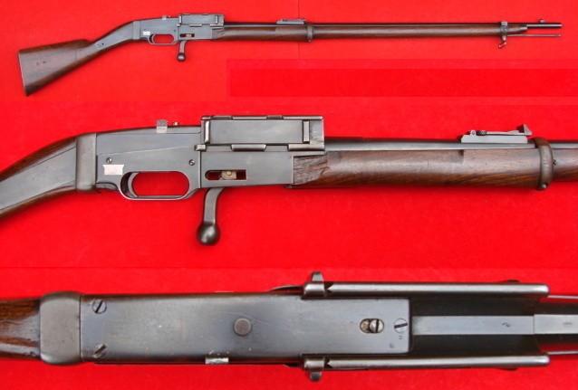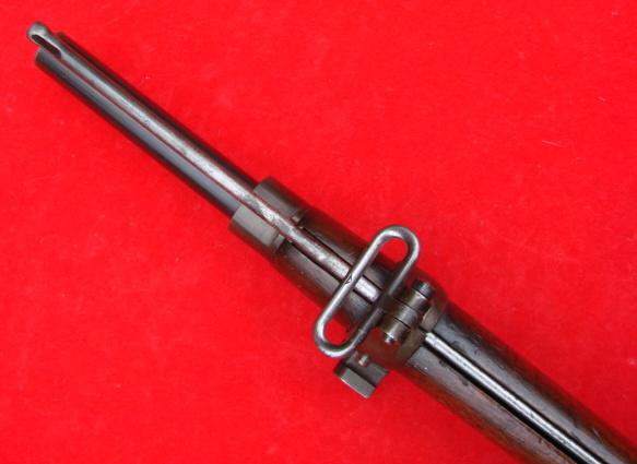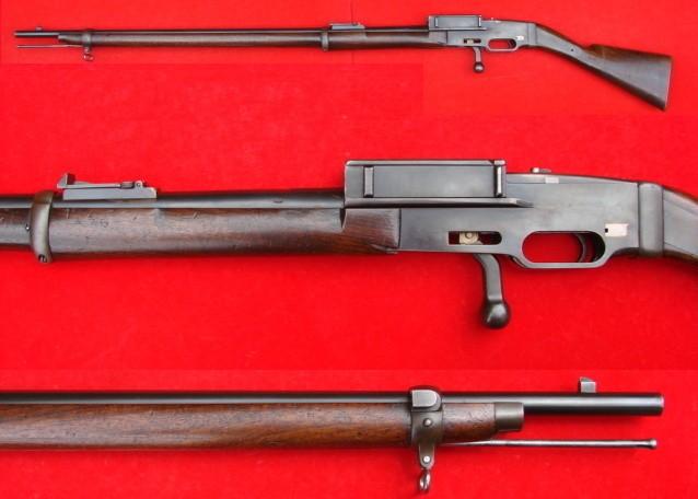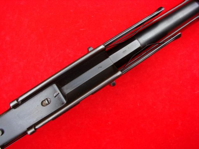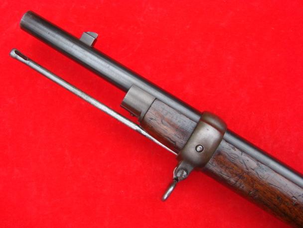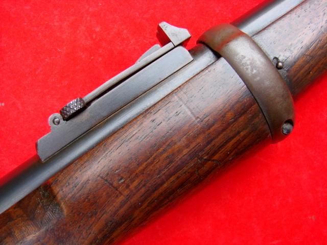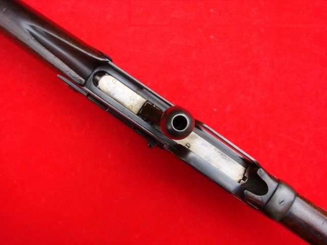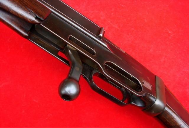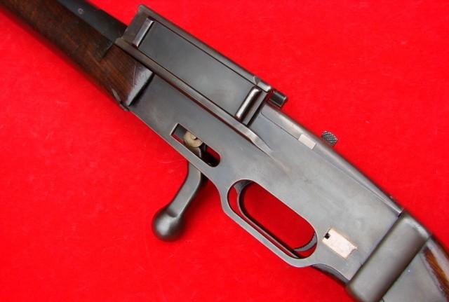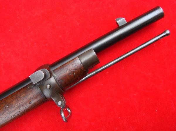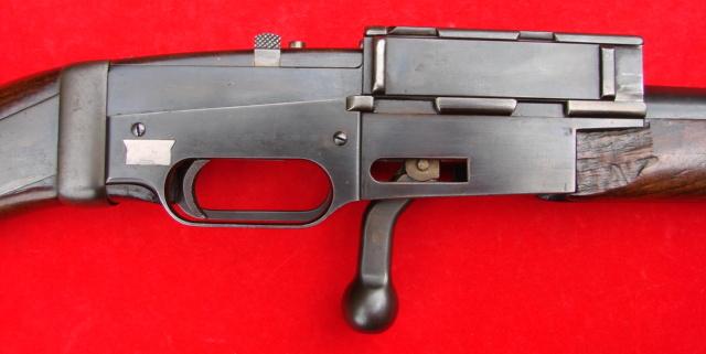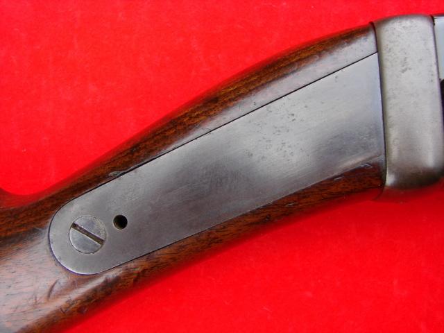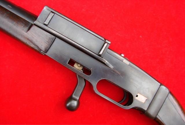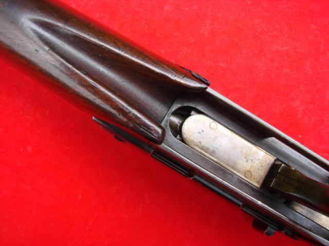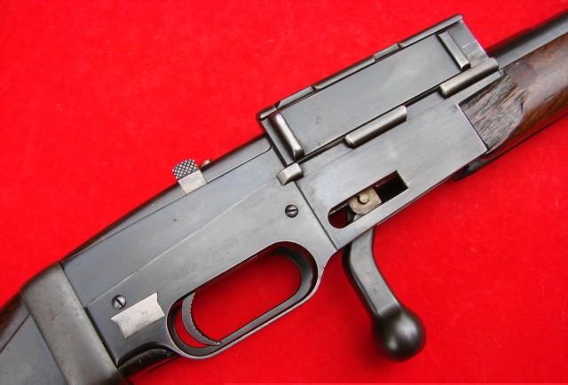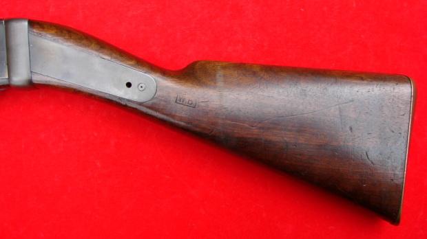 English double magazine bolt action repeating experimental rifle designed by Bethel Burton. Between 1882 and 1886 a number of Bethel Burton experimental rifles were submitted to the English War Office for evaluation and testing. None of these rifles was accepted by the English military. This specimen features a rather unusual straight pull bolt action, with a bolt handle located under the receiver.