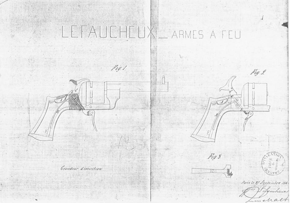 Le brevet du Triple Action est déposé par Lefaucheux à Paris le 27 Septembre 1862 sous le numéro 55784 et le 3 Octobre 1862 en Belgique sous le numéro 13277.