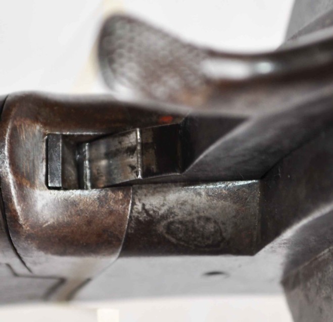 Sur la pièce de détente, en ovale, partiellement effacé par frottement :