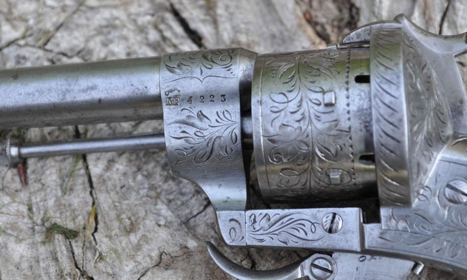 Revolver Lefaucheux luxueusement gravé et présenté en coffret.