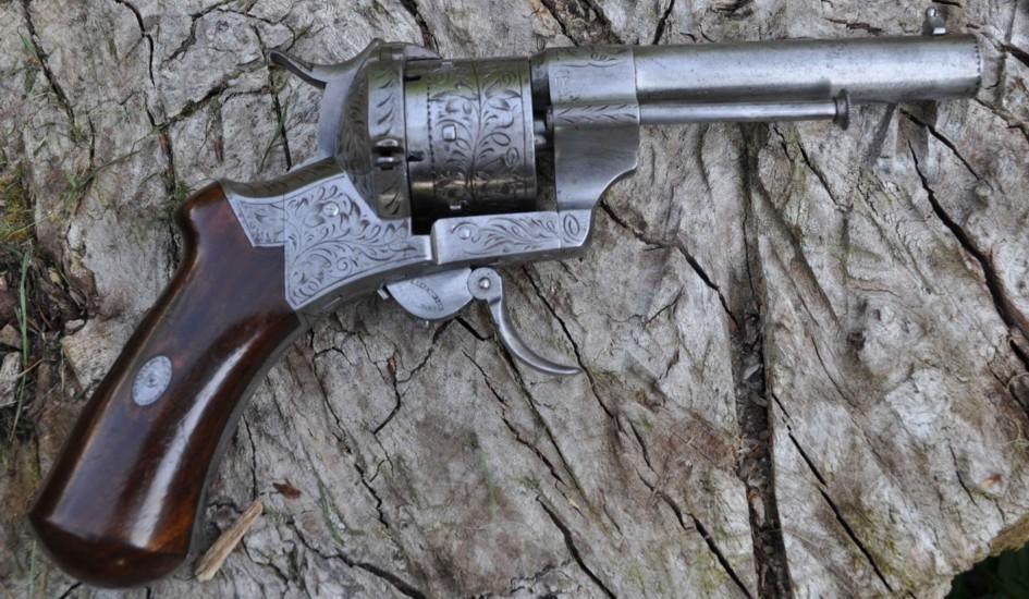 Le modèle de Lefaucheux 7 mm à broche, 6 coups à Triple Action est relativement rare de nos jours.