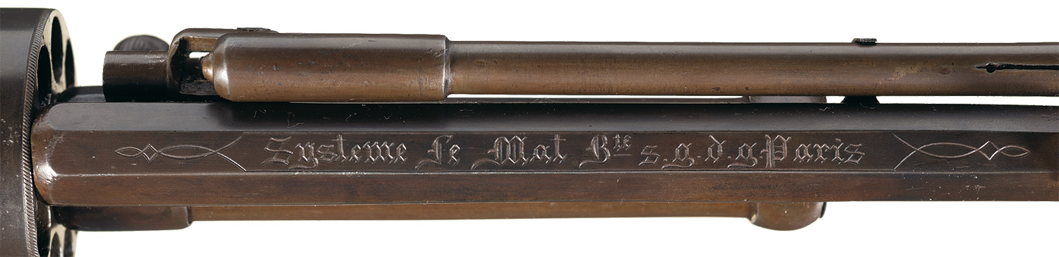 supérieur du canon est marqué "Système Le Mat Bte s.g.d.g. Paris" flanqué d'une