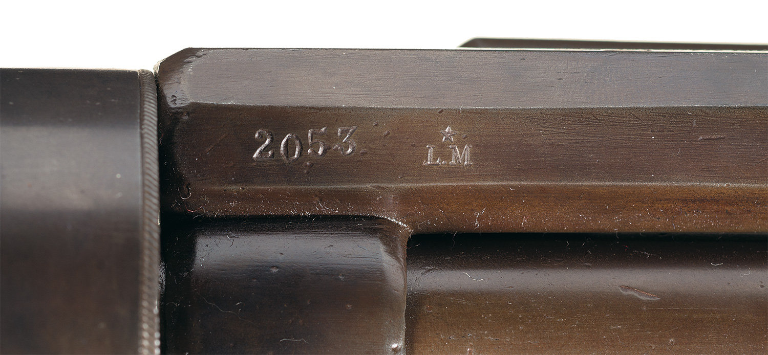 légère gravure. Le côté droit du canon est estampillé de la marque LeMat : une