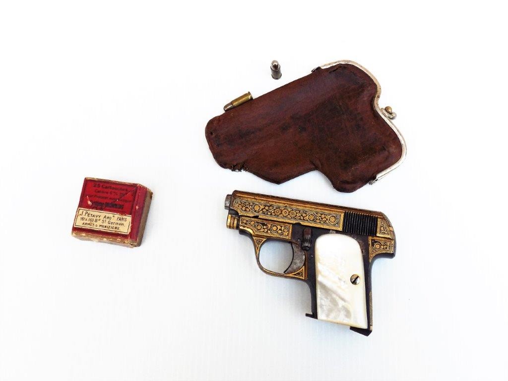 L'arme est probablement un unique modèle 10 en calibre 6,35 mm de la manufacture de Hendaye.