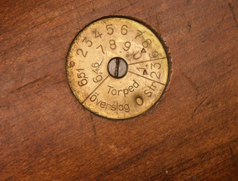 In 1938 30,000 rifles M96 were modified with a shorter barrel of 24.5 inch. The new barrel and the adoption of the new m/94/41 cartridge required that the rifle be equipped with a new rear sight. A quantity of new rear sights were manufactured for the m/96-38 by a local firm, but it proved more economical and-with a little training-just as effective to simply attach a metal plate or paper decal to the butt stock which gave the soldier a chart by which to quickly calculate the amount of hold "over" or "under." These decals or plates were attached to the stocks after the adoption of the new cartridge in 1941, see Figure 8. They were attached upside down so that the shooter could read them with the rifle at the shoulder simply by rotating the stock to the left.