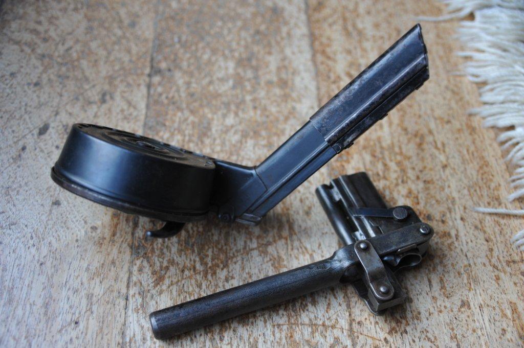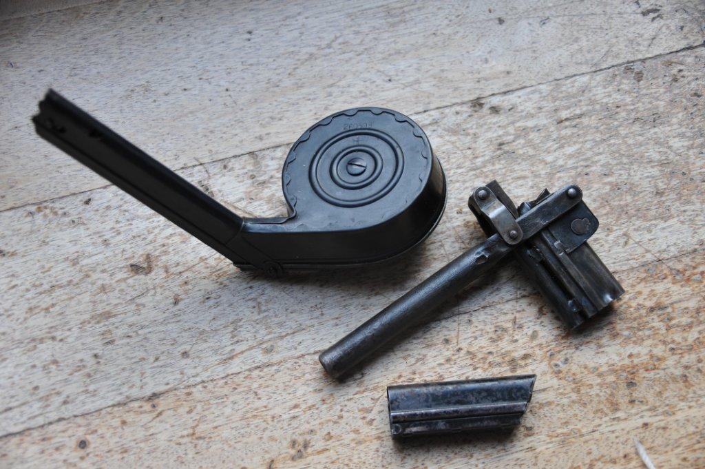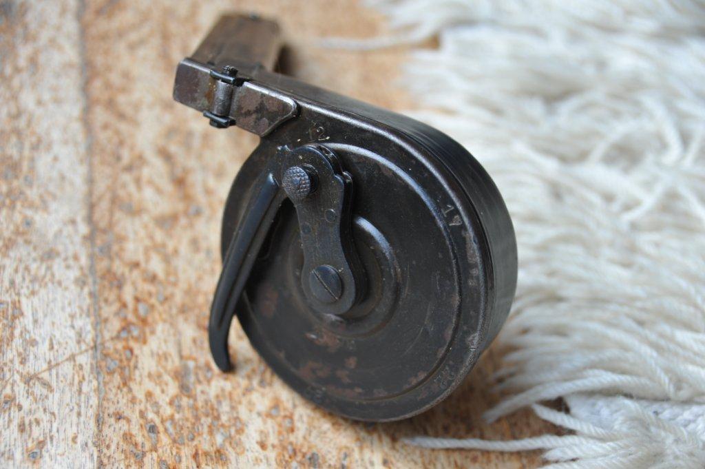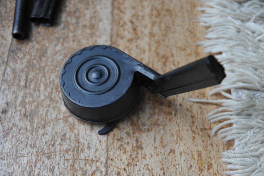 Chargeur "escargot" pour PO8 d’artillerie (Trommel-Magazin) du deuxième type, n° de série260509, fabrication B/N, avec sa protection métallique (Schutzkappe).