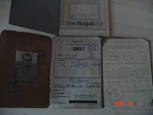 Comme promis ces quelques photos, le sous officier était basé sur l'ile d'Oléron dans la marine flak artillerie unité 4/812 à la pointe de Chassiron protégeant ainsi l'entrée du pertuis d'Antioche menant à la base sous-marine de la rochelle La Pallice. Sur la photo avec les documents on peut voir à droite le laisser passer pour la "festungs-bereich" La Rochelle, il était également sous-marinier de réserve (verbrennungsmaschine der Klasse II u III ,dienstgrad Hpt.gefr.)