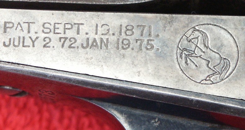 According to its serial # 80XXX, it was made in 1881-82. The revolver has lost all of its original finish and shows traces of intensive use, but its lock still works perfectly and the hammer still engages the 3 clicks.