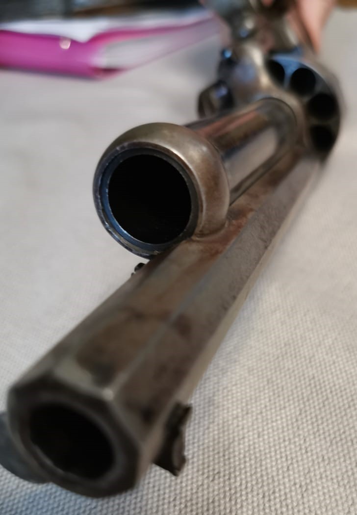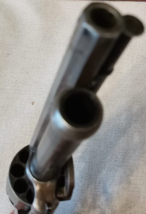 Yet that handicap is fully compensated by a 50 % greater firing power in the cylinder (9 rounds instead of 6), and specially with their additional, smooth-bore 20 gauge barrel (.65), that can fire a ball but is in fact designed to be loaded with buckshot.