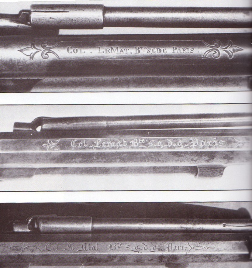 There are five, or even six different markings found on Le Mat's barrels, as shown in the following pictures, wether they were produced in the USA, France or the UK.