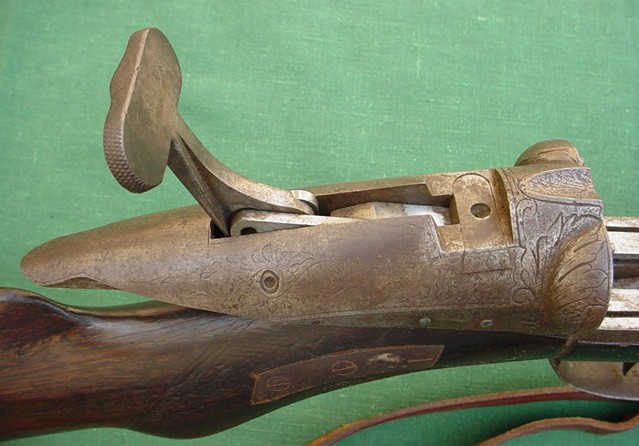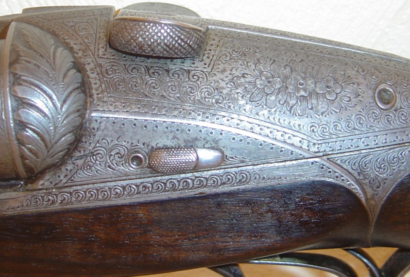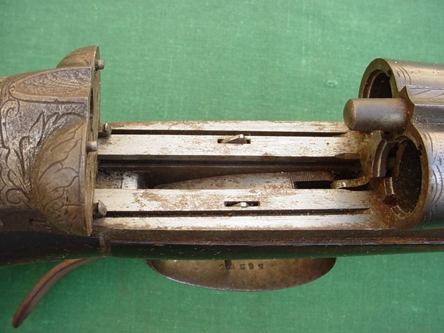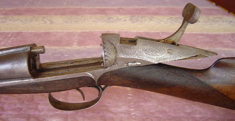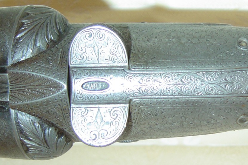 In 1881, a gunsmith from Saint Etienne, Régis Darne, patented a new basically different type of shotgun. It has a fixed barrel and a rotating breech system: the C model. By pushing the top lever, the breech block rotates 90 degrees on the right and gives access to the chambers (it doesn’t have ejectors). C models were available in 3 grades: C2 to C4.