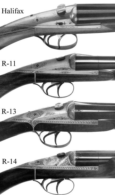 There are four models of sliding breech guns: the Halifax, R, P and V models. They all have automatic ejectors and reinforced butt stock by a wood screw inside the grip.