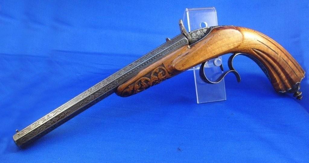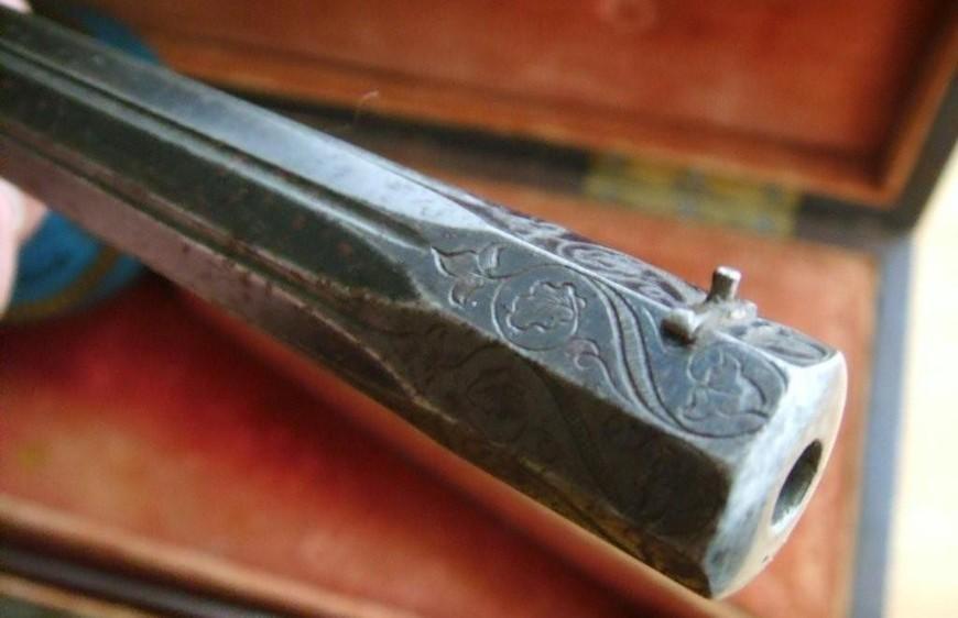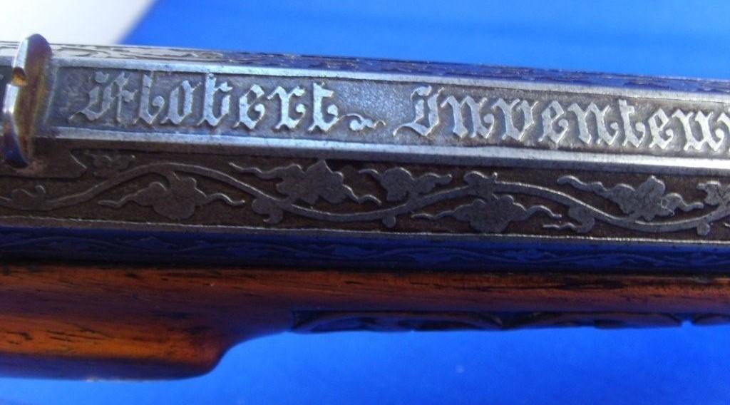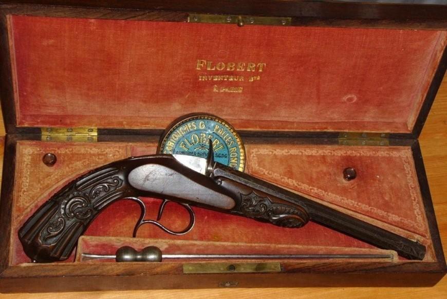 Souvent un pistolet "Flobert" n'est pas un pistolet de Flobert, l'inventeur breveté lui même. Voici un vrai Flobert, dans sa boite d'origine, 1860-1870 environ.