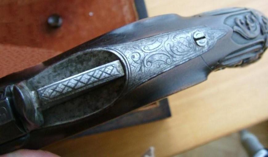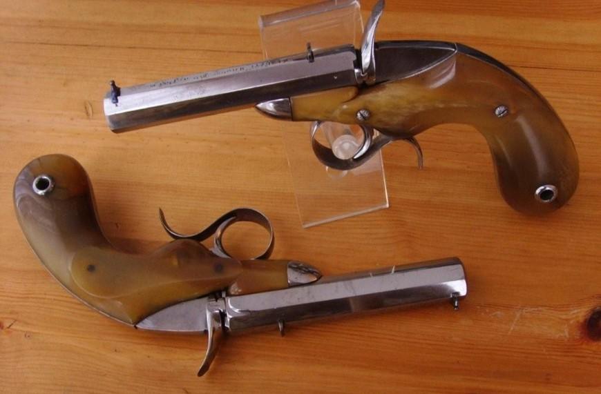 C’est une vraie paire, numérotée 1 et 2 sur la garde de détente, et un pistolet est l’image miroir de l’autre.