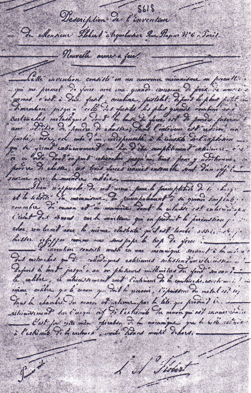 Merci à Bertrand Flobert, arrière petit fils de ce génial inventeur, qui m'a transmis les documents suivants avec énormément de gentillesse.