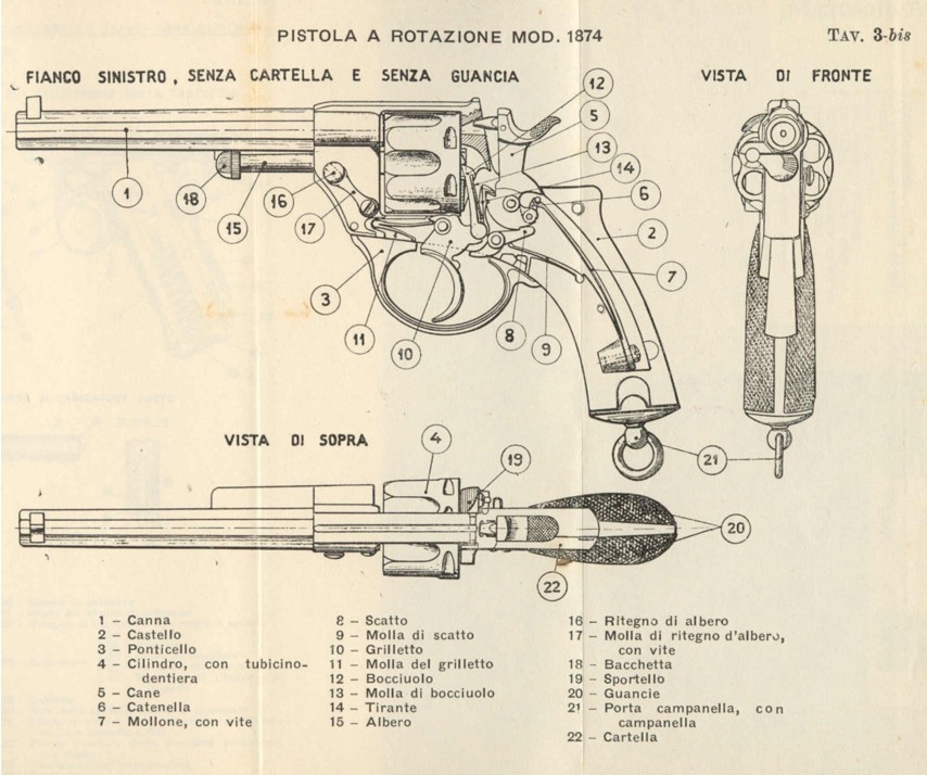 This lead to the adoption of the modified Glisenti 9 mm pistol, that went into production in 1909 and was adopted under the name "model 1910".