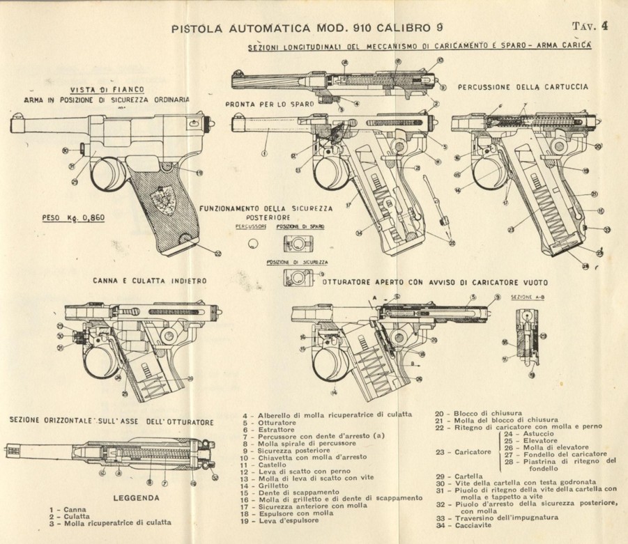 This calibre was accepted by Military and the weapon was adopted in the Italian Army in 1910 as “Pistola Automatica Modello 1910”.