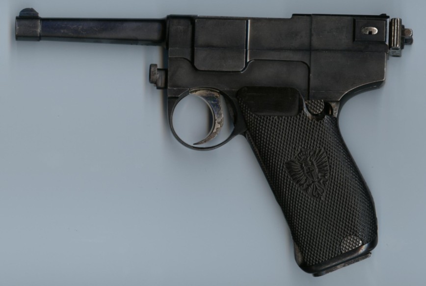 The Ordnance Board adopted the 1906 (under a different name) and ordered a small quantity of pistols. Later on, considering that the 7.65 caliber was not suitable for military use, a challenge was organized with a view to adopting a 9 mm pistol.