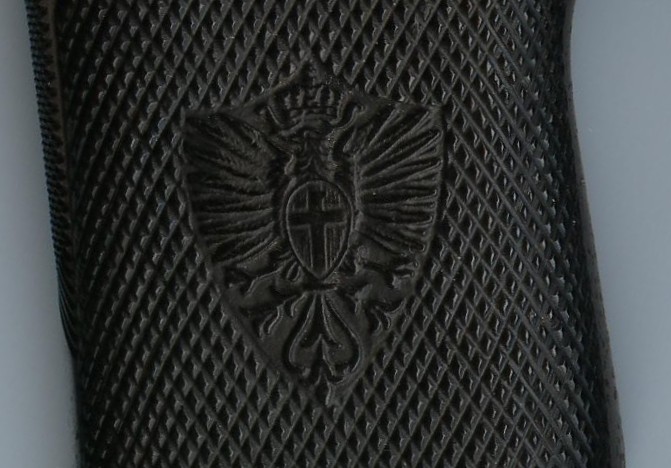 On the right side of the gun, above, is stamped the serial number of the weapon and, in a circle, C/Fab1910. “Fab” means “Fabbrica d’Armi di Brescia” (Weapons Factory – Brescia) and 1910 indicates the year of adoption of the weapon. Interestingly is the fact that on the first 5000 pistols, from A1 to C1000, circa, there is, in a circle “C/Fab 1909", rather “C/Fab1910”; this means an acquisition before the official adoption.
