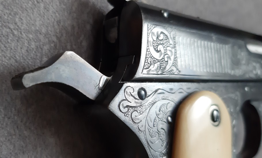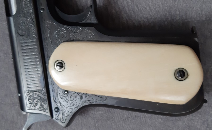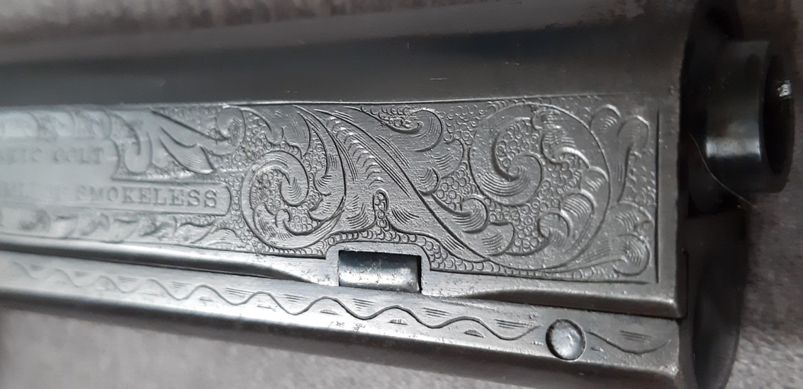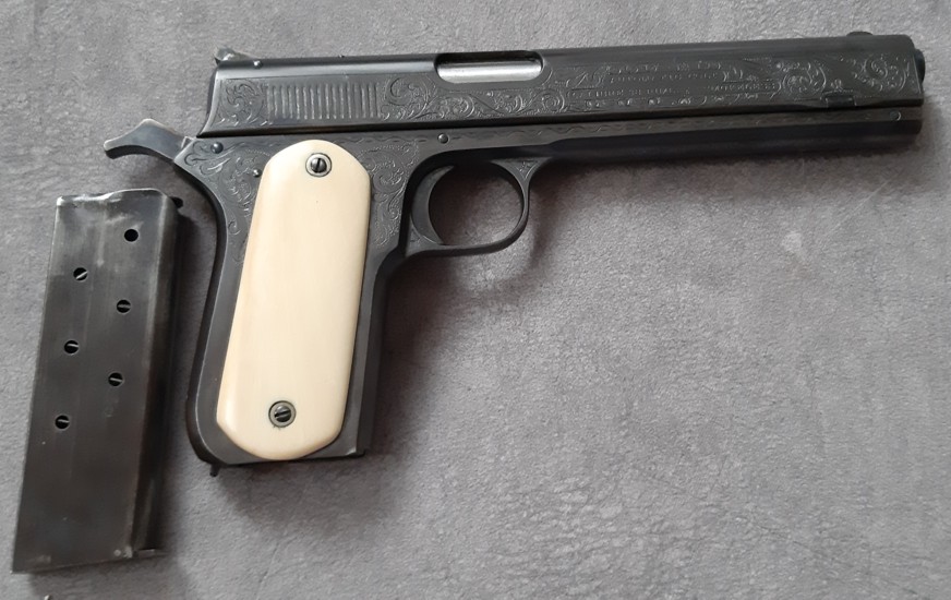 Colt 1900 exceptionnel avec gravures et plaquettes en