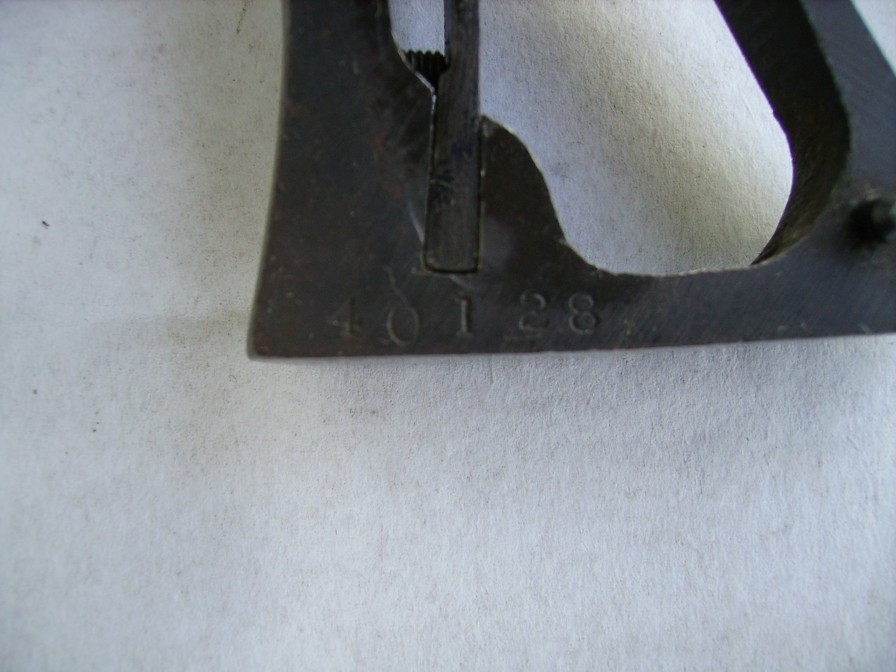 number on the front tab of the trigger guard (NEVER appears on copies)