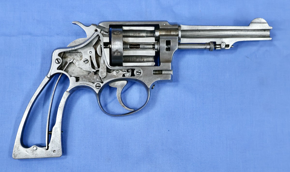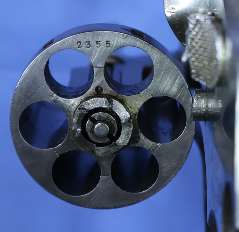 Il y a en fait un numéro de série (2355) estampillé à l'intérieur du cadre et à l'arrière du barillet. Je me demande s'ils ont retiré ce revolver de la chaîne d'assemblage pour le découper, ou s'ils pensaient simplement qu'un numéro de série le rendrait complet.