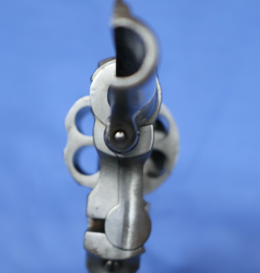 Le canon mesure 4-1/2 pouces (avec rainures réelles à l'intérieur), la longueur totale est d'environ 9-1/2 pouces. Comme indiqué sur le côté gauche du canon, il est "chambré" pour la cartouche SPL .38.