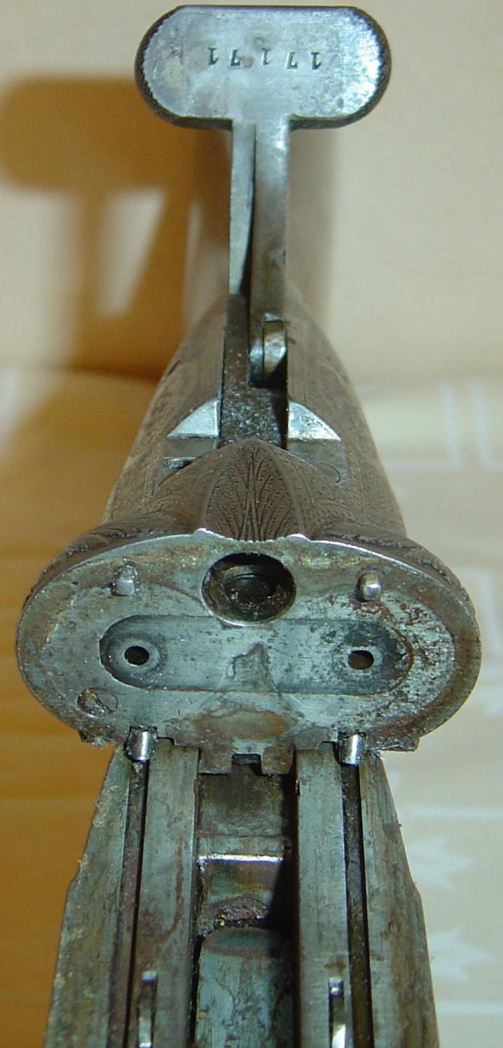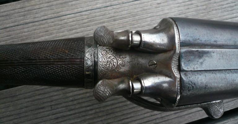 In 1881, a gunsmith from Saint Etienne, Régis Darne, patented a new basically different type of shotgun. It has a fixed barrel and a rotating breech system: the C model. By pushing the top lever, the breech block rotates 90 degrees on the right and gives access to the chambers (it doesn’t have ejectors). C models were available in 3 grades: C2 to C4.