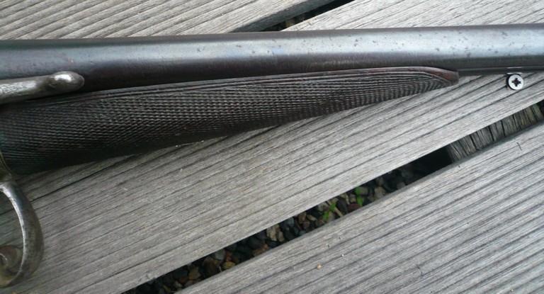 En revanche, j'avais un doute sur le modèle: c'est bien un 1902, le 1897 étant équipé du système dit "à grande clef". Celui présenté est à "petite clef", avec bois en une seule partie.