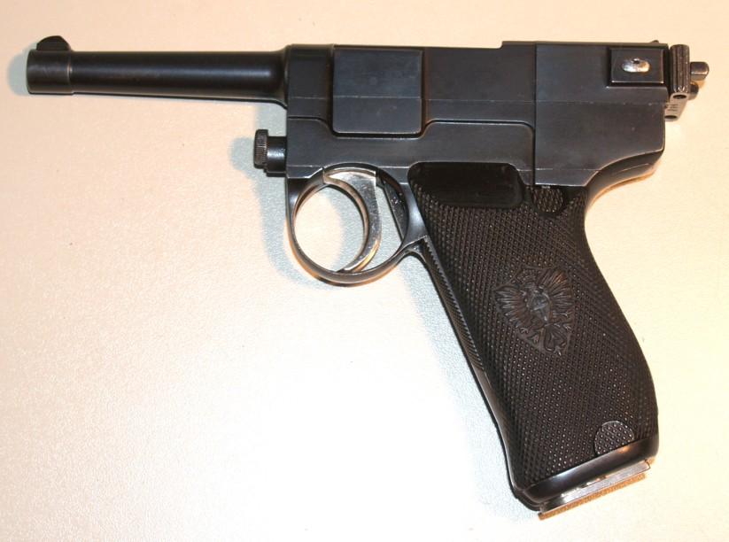 The Ordnance Board adopted the 1906 (under a different name) and ordered a small quantity of pistols. Later on, considering that the 7.65 caliber was not suitable for military use, a challenge was organized with a view to adopting a 9 mm pistol.