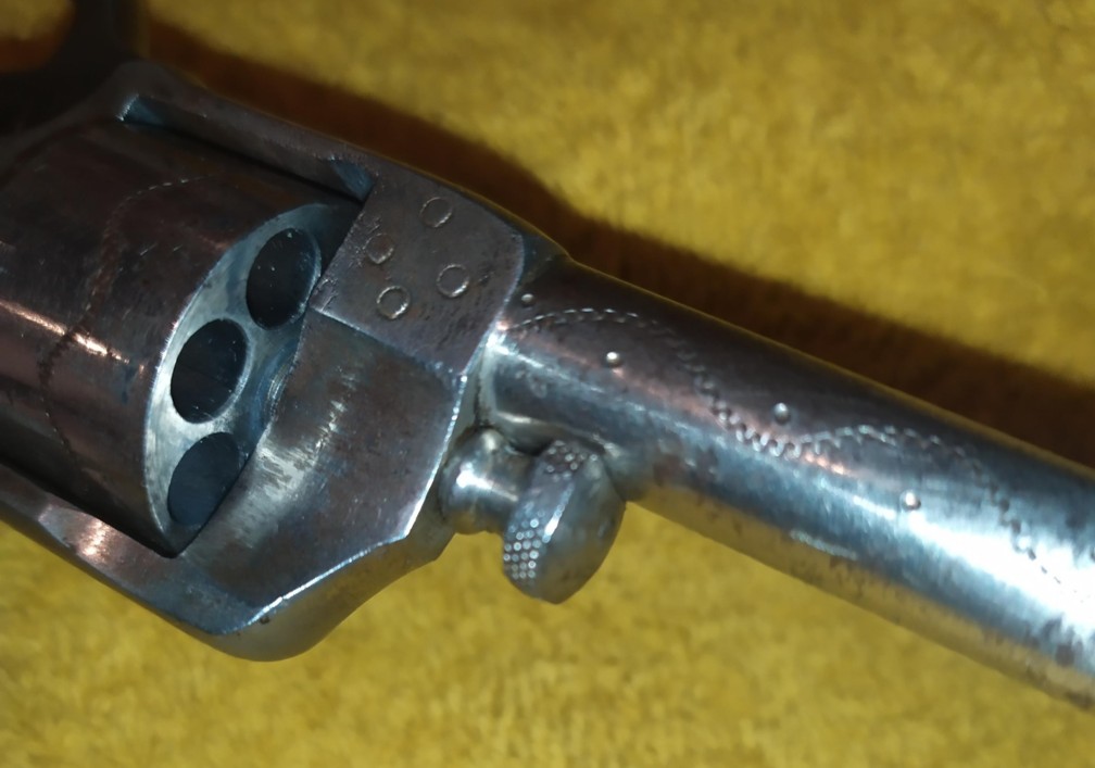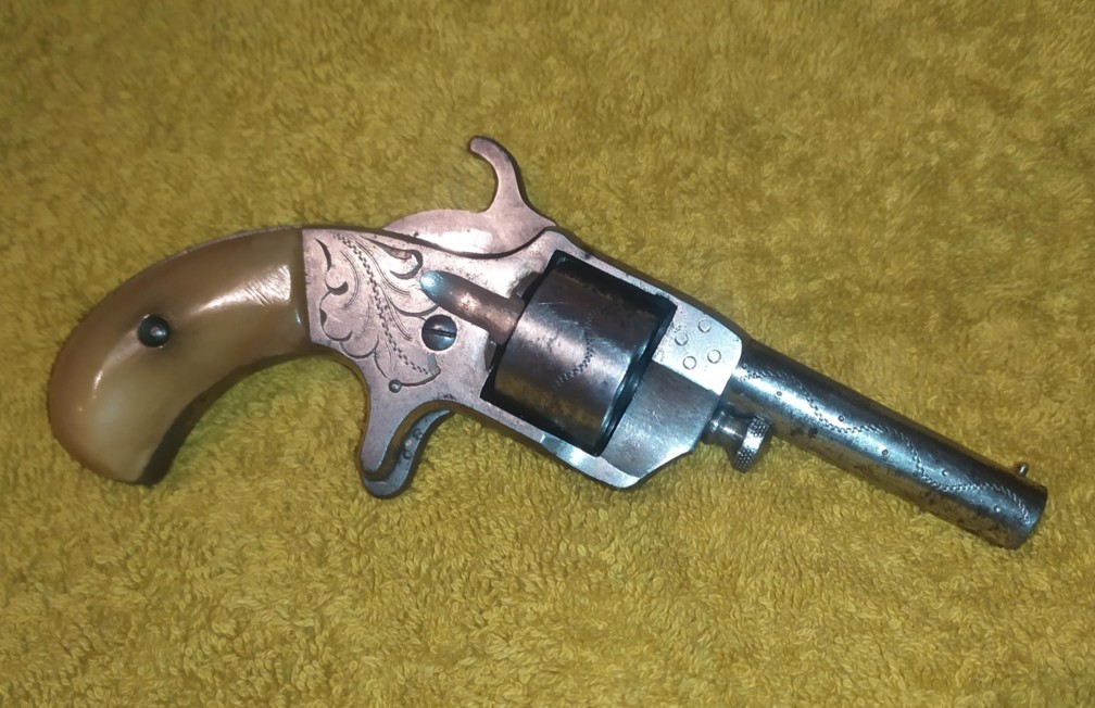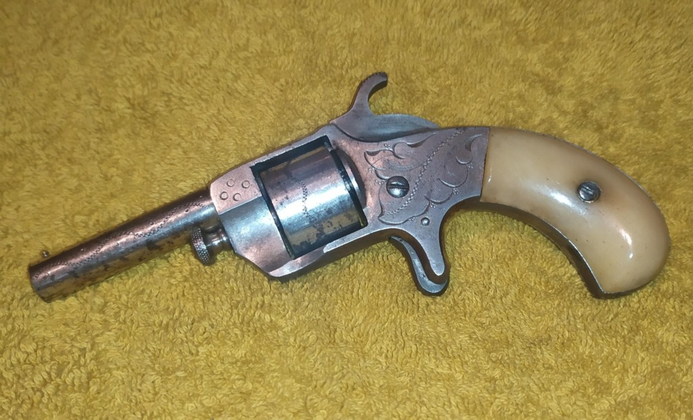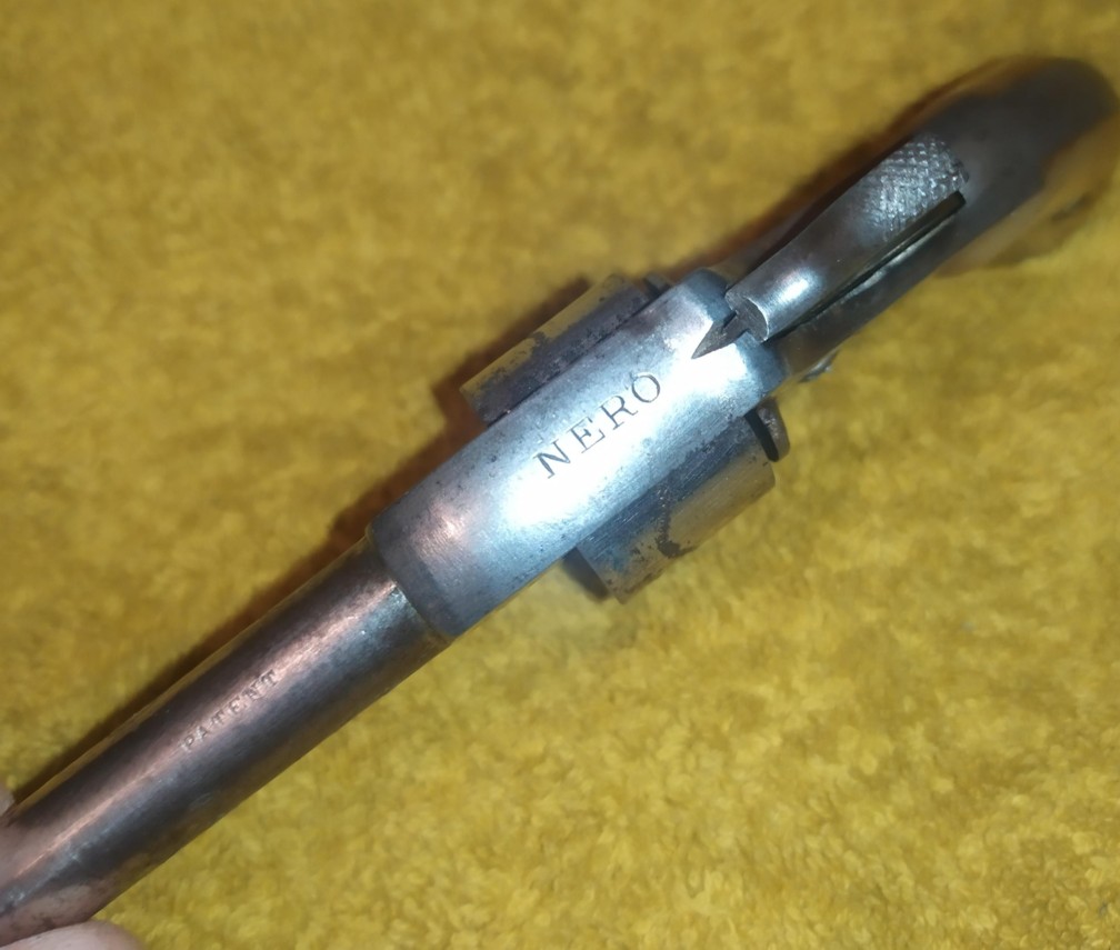 1873, it is nickel-plated, engraved and has pretty ivory plates. It has a brass