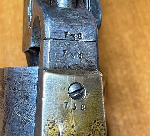 que le barillet provient d'un autre Colt Breveté (poinçons d'épreuve du BE) sans