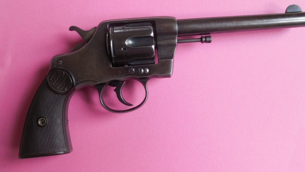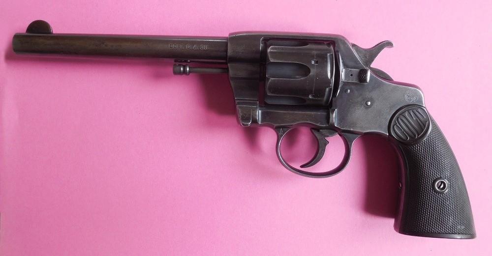 sont en calibre .38 Long Colt et bleus avec crosses en bois ; les exemplaires