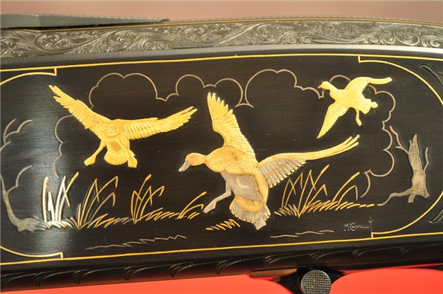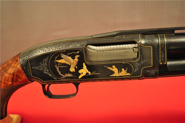 Modèle 12 chambré en calibre 12. Il a un canon de 28 pouces avec bande ventilée.