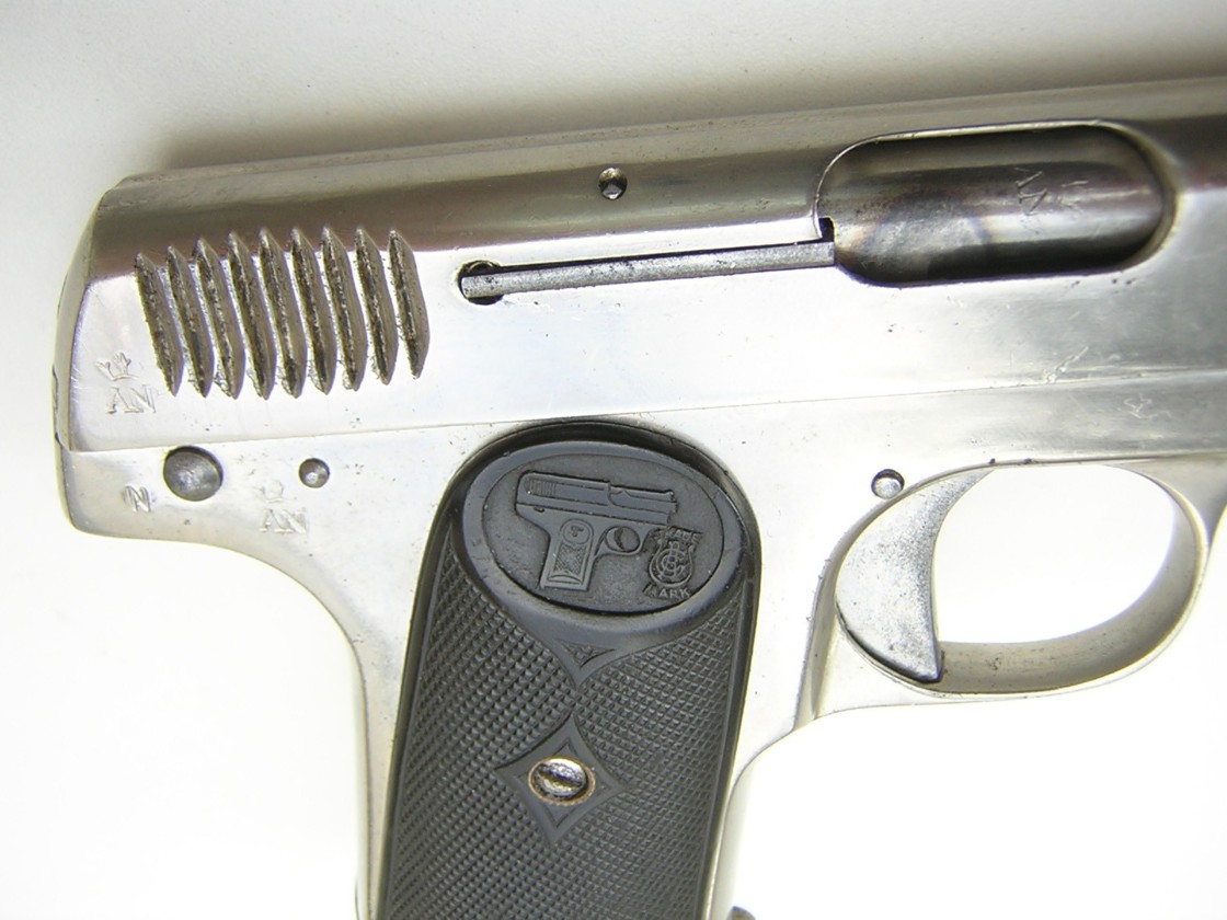 calibre 7,65 mm. Cette institution attribue le pistolet à Arizmendi y Goenaga.