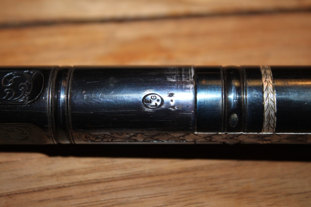 The weapon bears a Liège hallmark, ELG* in a vertical oval, representing the