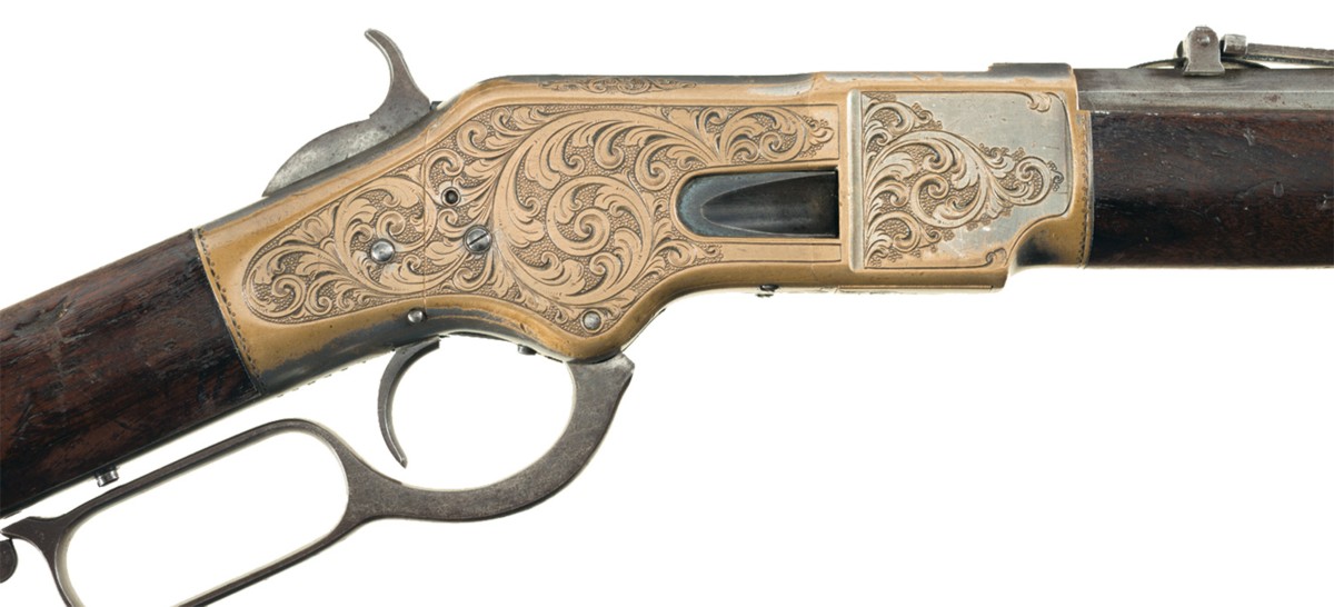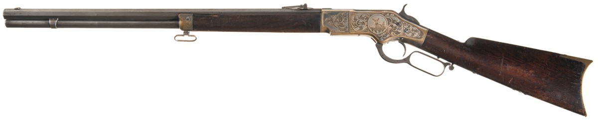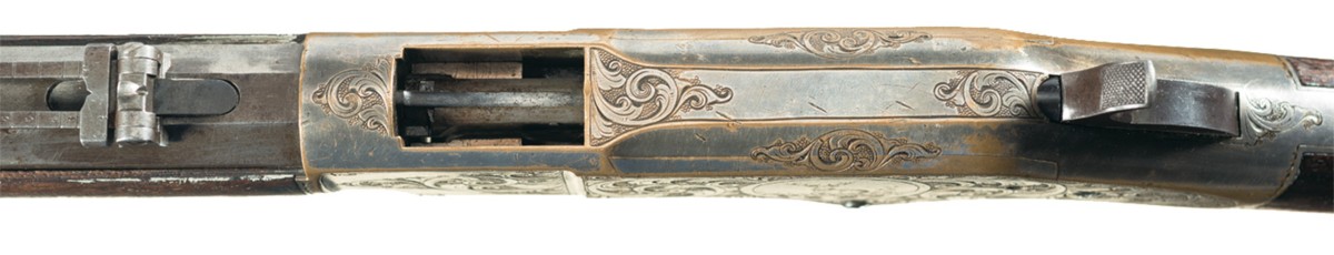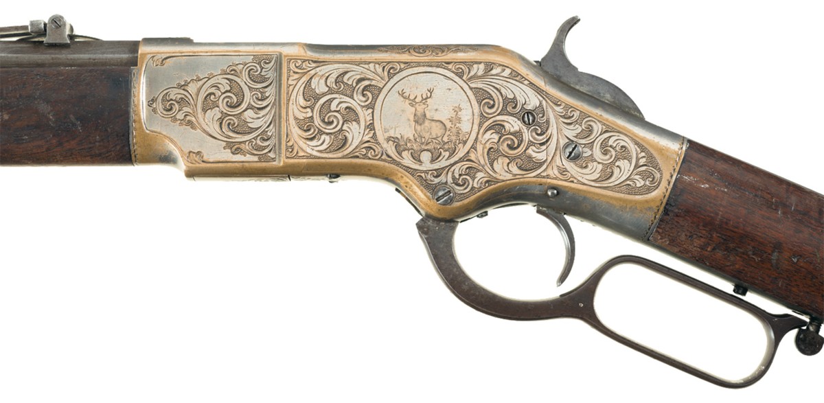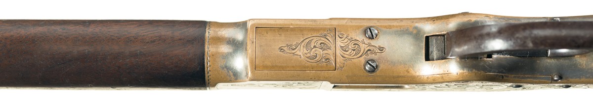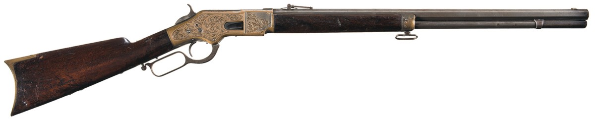 this Third Model 1866 lever action rifle features documented factory engraving.