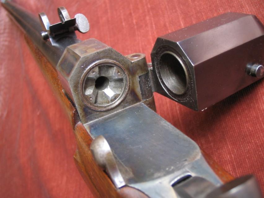 La cartouche est introduite dans la culasse mobile et la balle introduite directement dans le canon.