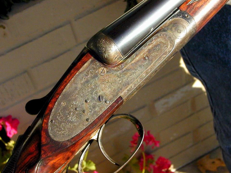 Culasse très joliment gravée, ainsi que le levier d’ouverture des canons, la garde de détente et la sûreté.