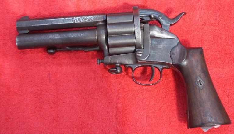 Le canon lisse à un système de fermeture à « tabatière ». Le revolver fut fabriqué jusque 1880.