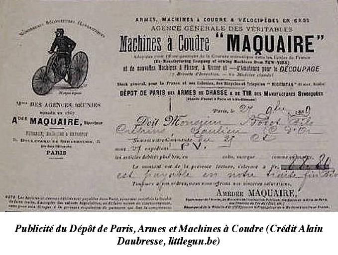 Le Revolver Bull Dog « Securitas » du Dépôt de Paris Les informations dont nous disposons aujourd’hui sur le Dépôt de Paris le décrivent comme un vaste local situé au N°5 de la rue de Strasbourg à Paris, dans lequel étaient distribuées des armes en provenance essentiellement de Liège et de Saint-Étienne, ainsi que divers produits dont des machines à coudre.