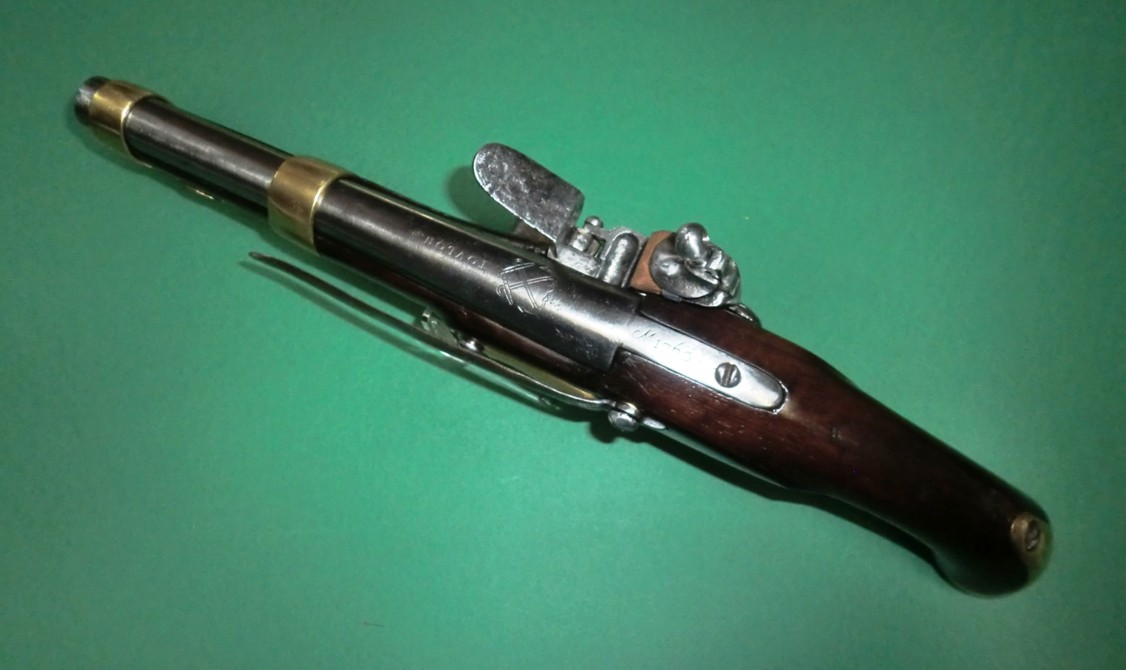 Pistolet fait pour armer la flotte du Levant (Méditerranée) et marqué de l’arsenal de Toulon avec ancre de marine.