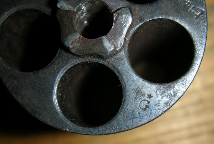 Le barillet cannelé est à 5 chambres. Le calibre d’après le marquage devrait être du 8 mm.