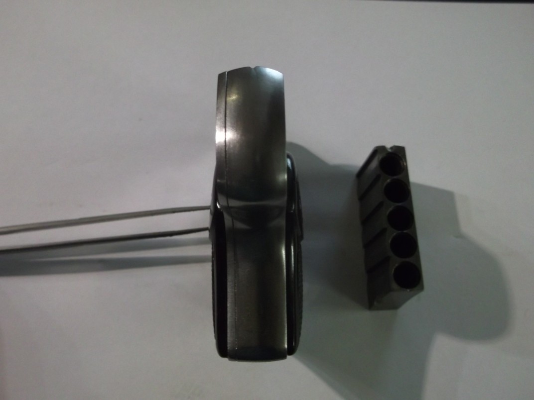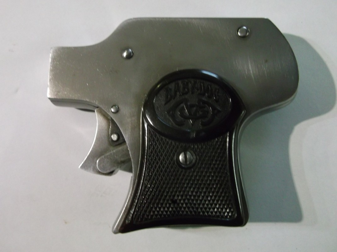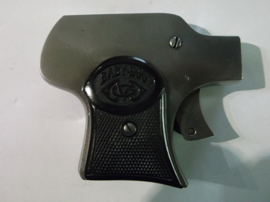 curious five-shot sliding-action pistol, marked Baby Dog on the grips. We also